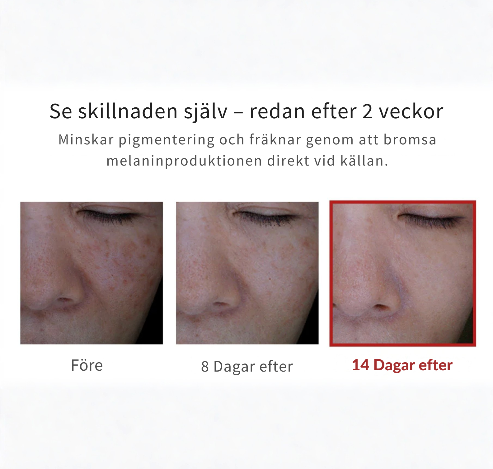 Tillsammans angriper de pigmentet på tre fronter samtidigt. Det är därför du ser skillnad inom 8 dagar.